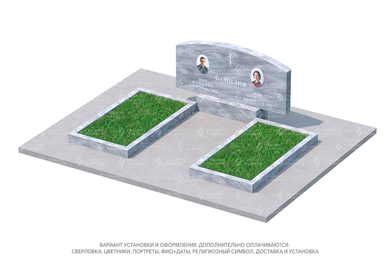 Форма и стиль — возможность выбора среди горизонтальных, вертикальных, семейных или мемориальных памятников.